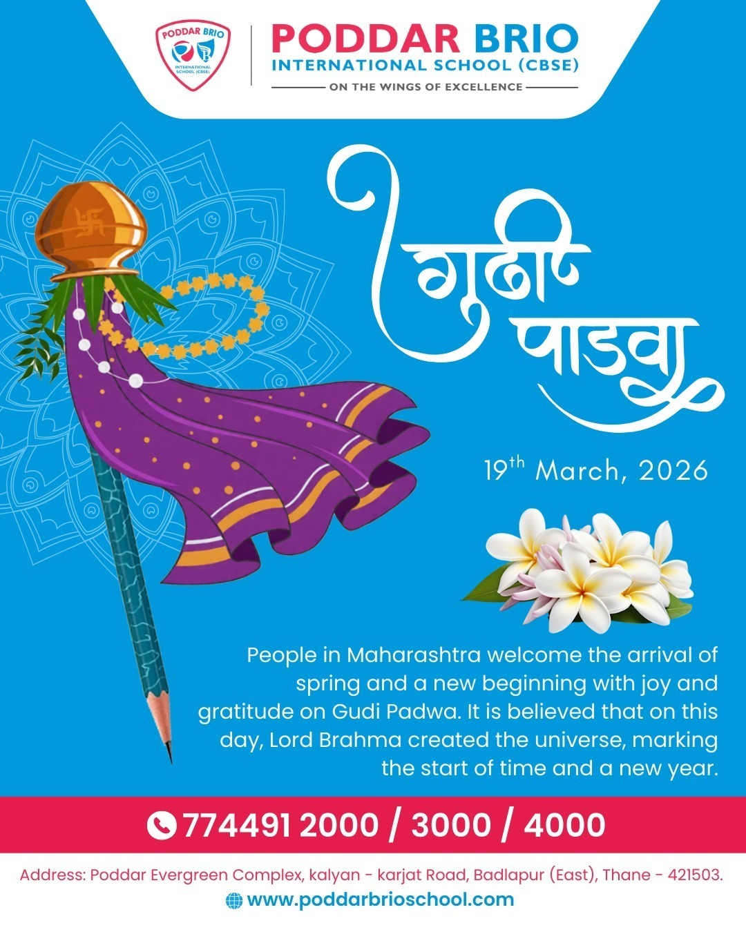 This Gudi Padwa, begin your child’s journey towards a bright future with Poddar Brio International School, Badlapur.
